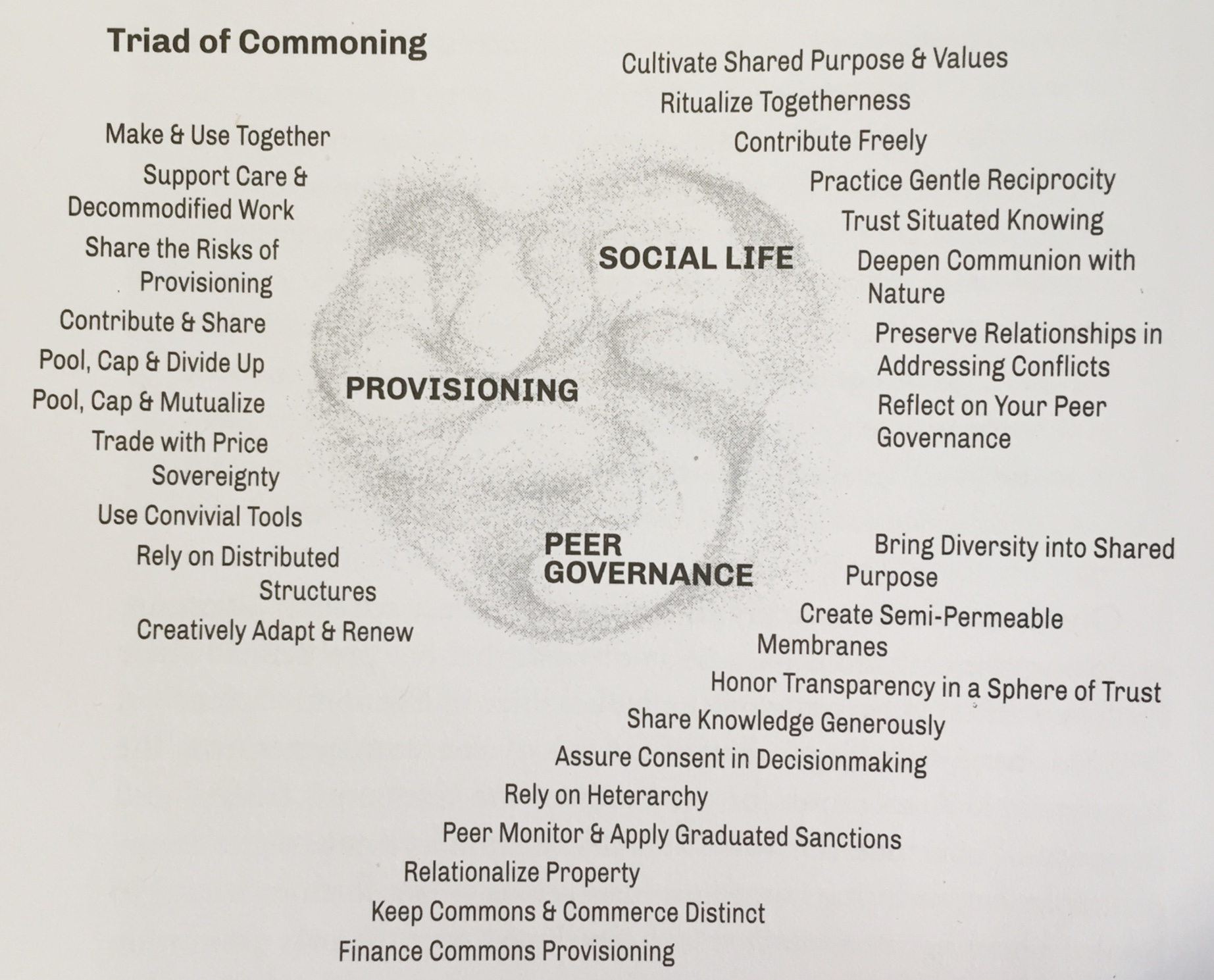 The training framework draws upon the concept of the Triad of Communing (from “Free, Fair, and Alive: The Insurgent Power of the Commons” by D. Bollier and S. Helfrich), which outlines patterns that can sustain a common. Cissie Gool House can be conceived as such a common.